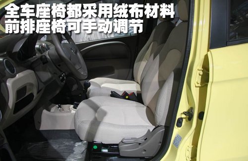 長(zhǎng)安奔奔Mini的全車座椅都采用絨布材料,雖然缺乏幾分豪華感,但座椅表面非常柔軟,而且座椅四周的包圍都比較到位,乘坐舒適性都讓人滿意。與其他微型轎車一樣,長(zhǎng)安奔奔Mini前排座椅都采用手動(dòng)四向調(diào)節(jié)方式。