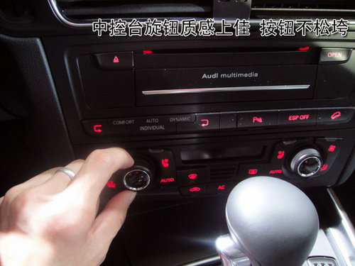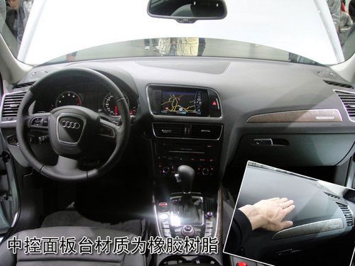 奧迪Q5儀表臺(tái)的整體感覺(jué)與奧迪家族的其它車(chē)型高度統(tǒng)一,略向駕駛員一側(cè)偏轉(zhuǎn)的儀表臺(tái)照顧到了駕駛員在駕車(chē)當(dāng)中的操作便捷性。與奧迪家族跑車(chē)相同的儀表盤(pán)布局增添了奧迪Q5的運(yùn)動(dòng)氣息。中控臺(tái)大量使用橡膠樹(shù)脂材質(zhì),手感較硬。