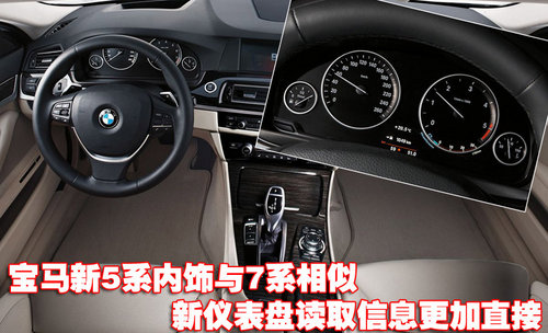 寶馬新5系的內(nèi)飾與7系有些相似,新款儀表盤讓駕駛員讀取信息更加直接。而第四代寶馬iDrive系統(tǒng)和6速電子手自一體變速箱,也均成為寶馬新5系的標(biāo)準(zhǔn)配置。