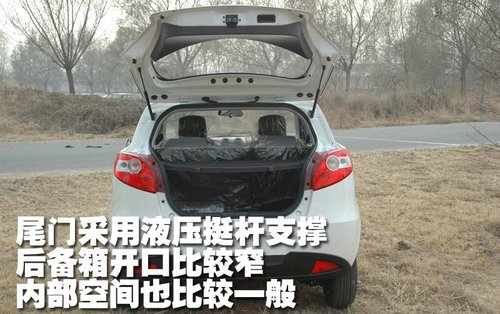 丘比特的尾門可以直接開啟,并且采用液壓挺桿支撐,后備箱的開口寬度比較窄,而且內(nèi)部空間也比較一般。不過如果后排座椅放倒或者折疊以后,整體的容積還是不錯的。