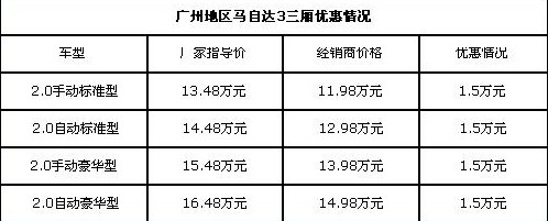 1、馬自達(dá)3三廂最高優(yōu)惠1.5萬(wàn)
