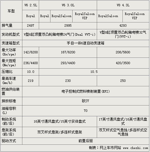 全新CROWN皇冠首次導(dǎo)入了搭載V8 4.3L發(fā)動機,該發(fā)動機運用了豐田獨有的VVTi技術(shù),在保證強勁動力輸出的同時,又很好的控制了油耗。在動力上4.3排量車型最大輸出功率達到了208千瓦,最大輸出扭矩達到420牛米,性能上全面提升。和現(xiàn)款一樣,新一代皇冠搭載了6速手自一體變速箱。為了保障豪華的駕駛和乘坐感受,4.3L排量配備了前雙叉桿式空氣懸掛,后多連桿式空氣懸掛,在高速以及長途行駛中全面提高車身穩(wěn)定性和舒適程度。