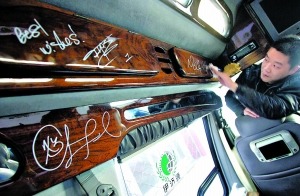 “小皇帝”詹姆斯、姚明隊(duì)友“麥蒂”、“大鯊魚”奧尼爾、“蜂王”保羅、“小黑豆”布魯克斯、法國足球巨星亨利、“香港天王”劉德華……司機(jī)白先生駕駛著一輛美國進(jìn)口道奇公羊商務(wù)車,每天他都會(huì)擦拭著車內(nèi)這些明星們的簽名,這輛車也成了名副其實(shí)的“明星專車”。