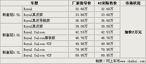 一汽豐田新皇冠 提現(xiàn)車加價(jià)2萬元