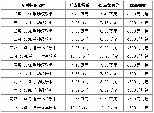 近日,車天下編輯從云南都市車迷寶獅標(biāo)致專營店獲悉,目前購標(biāo)致207全系車型,不但可以享受全現(xiàn)車供應(yīng),更能享受到4500元隨車大禮包贈(zèng)送。這在今年的年末顯得難能可貴,具體車型及詳細(xì)優(yōu)惠政策,如下表: