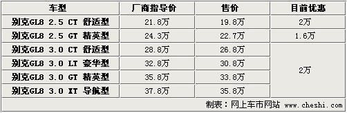 據(jù)4S店銷售人員介紹:目前別克GL8全系大部分車型可優(yōu)惠2萬元,僅有2.5升精英型優(yōu)惠1.6萬元。目前2.5排量車型2款均有現(xiàn)車,但顏色并不齊全,主要有銀色及藍色。3.0升車型無現(xiàn)車,預定需等2-3周時間,優(yōu)惠也可到2萬元。目前GL8系列車型經(jīng)過優(yōu)惠后,最低售價不足20萬元。