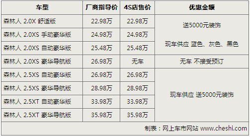 相比11月初的加價(jià)銷售,目前購(gòu)買斯巴魯森林人店內(nèi)可贈(zèng)送價(jià)值5000元的裝飾,其中包括了倒車?yán)走_(dá),尾喉,腳墊,2年道路救援卡等等,而在價(jià)格方面沒(méi)有優(yōu)惠幅度。現(xiàn)車方面,2.0豪華版,2.5豪華版有藍(lán)色、灰色、黑色、銀色等現(xiàn)車供應(yīng),可供挑選的空間還是很大的。