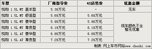 據(jù)長安汽車4S店銷售人員介紹,悅翔目前只有五款車型有現(xiàn)車銷售,其中包括三款手動檔車型和兩款自動檔車型。售價5.39萬元的悅翔手動基本型一直就沒有現(xiàn)車銷售,屬于有價無車的狀態(tài)。其他車型雖然有現(xiàn)車,但個別顏色仍需要預(yù)訂。長安汽車4S店銷售人員表示,目前購買悅翔并沒有任何優(yōu)惠政策。