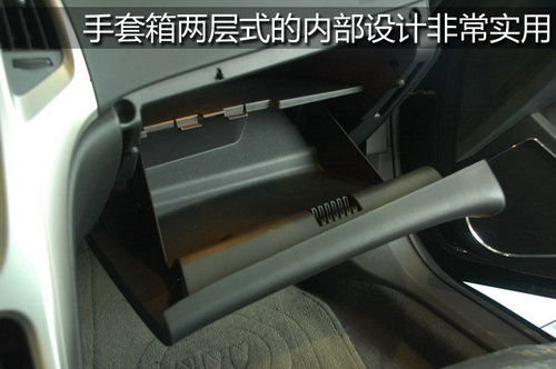 英朗的手套箱實用性非常強(qiáng),內(nèi)部采用了上下分層式的設(shè)計,上部可以放一些紙張之類的物品,下部則是可以承裝體積稍大的物品,手套箱中還帶有硬幣卡槽。