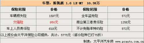 保險(xiǎn)費(fèi)用在車主的用車成本中是除油耗以外的第二大頭。本次對比的幾臺車都是在10萬價(jià)位,而保險(xiǎn)費(fèi)用與車輛的價(jià)格是相匹配的,所以在保險(xiǎn)費(fèi)用上面的價(jià)格差異不大。指導(dǎo)價(jià)為10.38萬的新凱越 1.6 LX-MT在購買了50萬第三者責(zé)任險(xiǎn),車上人員責(zé)任險(xiǎn)購買5萬元的保額以后,一年下來的保險(xiǎn)費(fèi)用在打8折以后需要5775元。