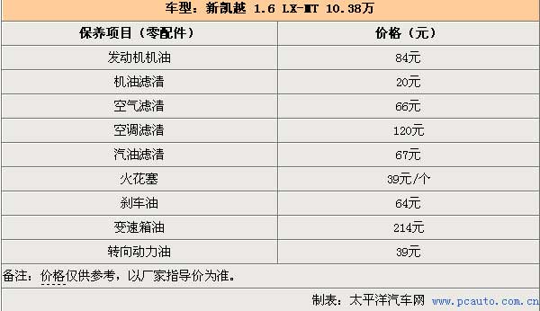 凱越保養(yǎng)周期為5000公里,保修為2年或者6萬公里。首保在5000公里之內(nèi)保養(yǎng),之后每5000公里保養(yǎng)一次。更換機(jī)油機(jī)濾的常規(guī)保養(yǎng)為161元,在行駛到6萬公里時(shí)需要做一次比較大的保養(yǎng)價(jià)格為868元,凱越平均一年兩萬公里保養(yǎng)費(fèi)用大概1334元。