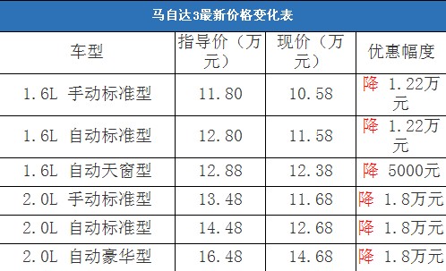 近日,編輯從北京地區(qū)綜合經(jīng)銷商處了解到,目前馬自達3的現(xiàn)車不是很充足,有少量銀色、紅色和黑色現(xiàn)車;目前購車最高可以優(yōu)惠1.8萬元,降價幅度與去年末相比有了小幅回縮。以下是馬自達3最新價格變化表: