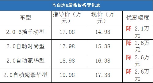 近日,編輯從北京地區(qū)某一汽馬自達(dá)4S經(jīng)銷商處了解到,馬自達(dá)6的現(xiàn)車充足,但是全系只能優(yōu)惠3000元,更多的優(yōu)惠需要消費(fèi)者到店詳談才能確定。相比之下,北京地區(qū)綜合經(jīng)銷商處的馬自達(dá)6自動(dòng)擋車型的現(xiàn)車比較充足,購(gòu)車可以優(yōu)惠2.6萬元,手動(dòng)擋的現(xiàn)車較少,可以優(yōu)惠2.1萬元,降價(jià)幅度與去年末相比有了比較可觀的提升。不過據(jù)經(jīng)銷商透露,消費(fèi)者要想以這個(gè)價(jià)格提車,需要在店內(nèi)做購(gòu)車一條龍服務(wù),其中車輛四項(xiàng)基本保險(xiǎn)可以打8.5折(約合4800-5300元左右)。以下是馬自達(dá)6最新價(jià)格變化表: