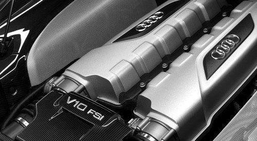 采用干式油底盒的5.2L FSI V10發(fā)動(dòng)機(jī)采用了碳纖維頂罩,發(fā)動(dòng)機(jī)艙同樣使用了玻璃外殼,這樣就可以大方的像外人炫耀。另外,V10發(fā)動(dòng)機(jī)相比只比V8發(fā)動(dòng)機(jī)重了31千克,爆發(fā)點(diǎn)也略微靠后,V8發(fā)動(dòng)機(jī)在7800轉(zhuǎn)/分時(shí)獲得最大功率414馬力,而V10發(fā)動(dòng)機(jī)在8000轉(zhuǎn)/分時(shí)能夠獲得518馬力。此外,V8版的R8在6000轉(zhuǎn)/分時(shí)獲得最大425Nm的扭矩,V10發(fā)動(dòng)機(jī)能夠在6500轉(zhuǎn)/分時(shí)輸出最大530Nm的扭矩。