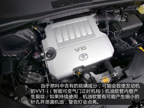 這次召回范圍內(nèi)的車輛由于燃料中含有的硫磺成分,可能會致使發(fā)動機(jī)的VVT-i(智能可變氣門正時機(jī)構(gòu))機(jī)油軟管內(nèi)壁產(chǎn)生裂紋;如果持續(xù)使用,機(jī)油軟管有可能產(chǎn)生細(xì)小的針孔并泄漏機(jī)油,警告燈會點亮。如果繼續(xù)使用的話,有可能會產(chǎn)生安全上的隱患。