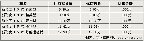 時(shí)尚精致的外觀,精細(xì)的內(nèi)飾做工,省油是飛度這款日系小車持續(xù)熱銷的原因。3月1日起,廣汽本田調(diào)整了飛度4款車型的售價(jià),重新調(diào)整后的售價(jià)比原來的廠商指導(dǎo)價(jià)上漲了400元——3000元。目前消費(fèi)者購車優(yōu)惠幅度在1000元左右,具體車型見下表: