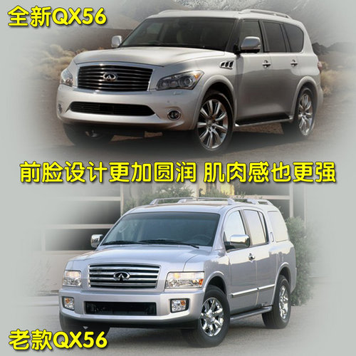 新款QX56外觀方面,厚實(shí)的引擎艙,具有力量感的鍍鉻進(jìn)氣格柵和翼子板透氣孔都在暗示著這款新車強(qiáng)大的動(dòng)力系統(tǒng)。從整體設(shè)計(jì)上講,只有林肯領(lǐng)航員能有如此的氣勢(shì)。但從側(cè)身上來(lái)看,新QX56較老款更為圓潤(rùn),體現(xiàn)出了英菲尼迪一貫的優(yōu)雅感。