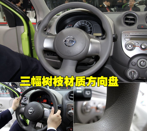 東風(fēng)日產(chǎn)瑪馳采用了三幅式方向盤,配以銀色的裝飾面板,整體感覺運(yùn)動時(shí)尚。這款方向盤的包覆材料為樹脂材質(zhì),質(zhì)地較軟手握感覺比較舒適。局部做工方面,瑪馳方向盤的處理也比較精細(xì),沒有毛邊等瑕疵。