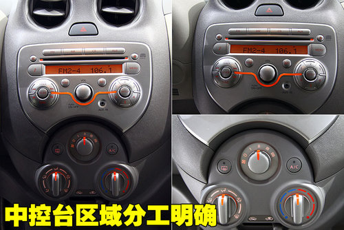 空調(diào)面板部分,東風(fēng)日產(chǎn)瑪馳的控制區(qū)域分工明確,操作比較簡單,非常容易上手?刂茀^(qū)域分工明確,操作比較簡單,而且時(shí)尚氣息很濃。