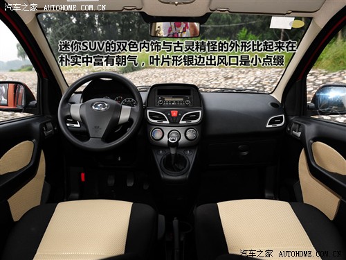 哈弗M1的車身尺寸為3645mm*1625mm*1630mm,在原型車精靈的基礎(chǔ)上,增加了大面積的灰顏色車身包圍,僅僅是通過這樣簡單的裝飾,M1立馬變得富有野性,甚至總讓人有著去野外玩一陣子的沖動(dòng)。不僅如此,前后杠底部加裝的護(hù)板在視覺效果的同時(shí),也的的確確提高了車輛的通過性。值得表揚(yáng)的是,哈弗M1采用了前后盤式剎車,對(duì)于一款全系在6萬以下的車型來說,還是非常厚道的。