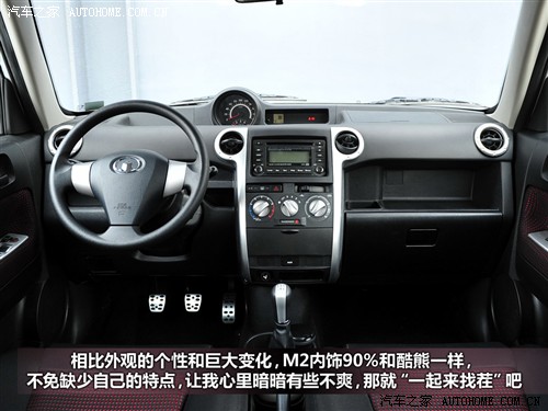 哈弗M2的內(nèi)飾與酷熊保持了高度的一致,看到這個造型難免讓人想到豐田XB,只不過長城模仿的是大部分人都不知道的車型。當(dāng)然,造型一致并不意味著沒有變化,比如M2在的金屬踏板是酷熊沒有的,它既增加了視覺效果又對防滑起到積極意義,車門的內(nèi)襯顏色也升級為新的黑紅搭配的網(wǎng)格材料。