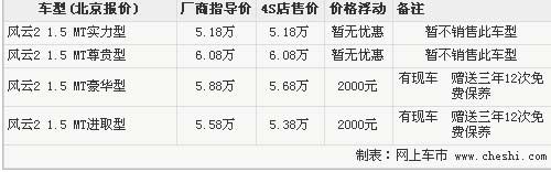 風(fēng)云2兩廂共有4款車型,指導(dǎo)價(jià)為5.18萬-6.08萬。根據(jù)奇瑞4S店銷售人員介紹,目前店內(nèi)銷售的車型只有進(jìn)取型和豪華型兩款,現(xiàn)在購車即可享受2000元現(xiàn)金優(yōu)惠,此外4S店還贈(zèng)送三年12次免費(fèi)保養(yǎng)。
