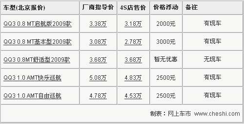 據(jù)奇瑞汽車4S店銷售人員介紹,目前奇瑞QQ30.8排量的三款車型只有舒適版車型無(wú)現(xiàn)車,基本型和啟航版車型分別有3000元和2000元的價(jià)格優(yōu)惠,1.0自動(dòng)檔車型也有2500元的現(xiàn)金優(yōu)惠。雖然降價(jià)幅度沒(méi)有前一陣子大,但還有額外的驚喜,到店購(gòu)車在原有現(xiàn)金優(yōu)惠的基礎(chǔ)上還可以贈(zèng)送價(jià)值1000元的裝飾。