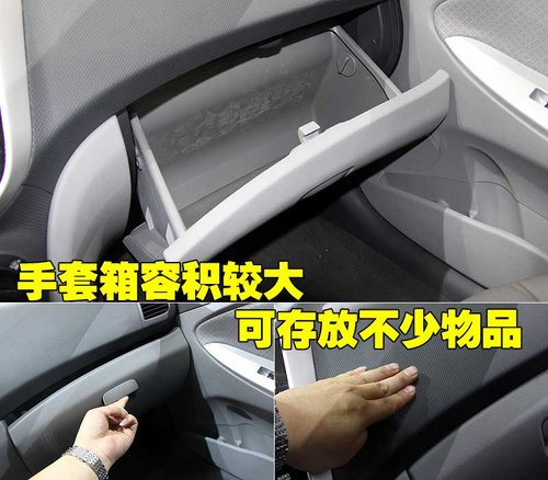 副駕駛位置的手套箱沒有阻尼設(shè)計,打開時依靠重力自由下落,大容積手套箱能夠滿足車主日常放置常用物品的需求。