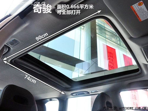 準(zhǔn)確地說,奇駿的天窗應(yīng)該叫大天窗,它的面積遠(yuǎn)超過一般意義上的普通天窗,但是距離全景天窗應(yīng)該說還是有差距的。不過,經(jīng)過實(shí)際測(cè)量,奇駿的天窗面積雖然跟其他全景天窗或雙天窗相比要小一點(diǎn),但是它實(shí)際可以打開的面積卻是最大的?梢哉f,奇駿的整個(gè)天窗幾乎都是可以打開的。
