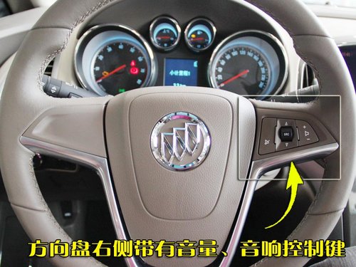 真皮縫制的方向盤在10點(diǎn)和14點(diǎn)的位置都設(shè)計(jì)了兩個(gè)凸起,這種設(shè)計(jì)更多的出現(xiàn)在運(yùn)動(dòng)車型上,是為了能夠讓駕駛者更加易于操縱方向盤。在三輻方向盤的右側(cè)是多媒體按鈕,能夠用來控制音響系統(tǒng)。