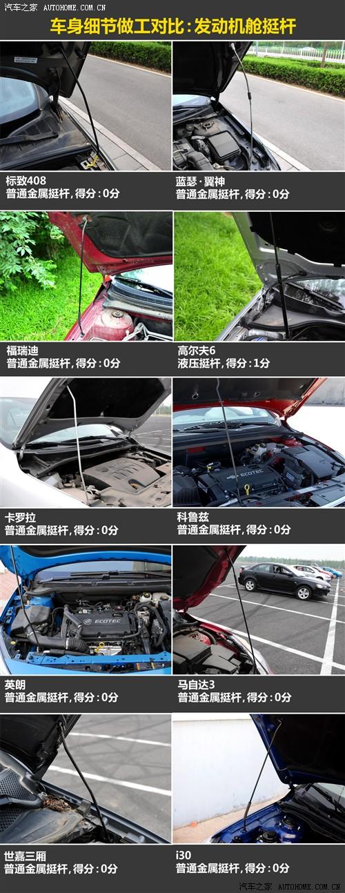 在這一環(huán)節(jié)的對(duì)比中,高爾夫6憑借著液壓的發(fā)動(dòng)機(jī)艙蓋挺桿和大面積的發(fā)動(dòng)機(jī)護(hù)板而保持領(lǐng)先,進(jìn)口的馬自達(dá)3兩廂在發(fā)動(dòng)機(jī)護(hù)板上也不錯(cuò),但其他一些車型其實(shí)則沒有大的區(qū)別。
