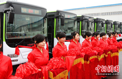 中新網(wǎng)重慶6月11日電 (記者 郭晉嘉)11日,重慶首批50輛新能源氣電混合動力公交車交付該市公交集團(tuán)使用,一輛車每年可節(jié)約燃?xì)饨f立方米。