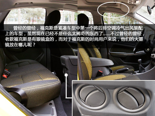 ?怂故菄(guó)內(nèi)第一款在后排加裝空調(diào)出風(fēng)口的緊湊型轎車(chē),雖然在現(xiàn)在已經(jīng)不是什么大不了的設(shè)置,但是貼心的設(shè)計(jì)還是不錯(cuò)的。不過(guò)沒(méi)有眼鏡盒是讓編輯我這個(gè)四眼感覺(jué)很不爽的,畢竟老款?怂故菐в醒坨R盒的。