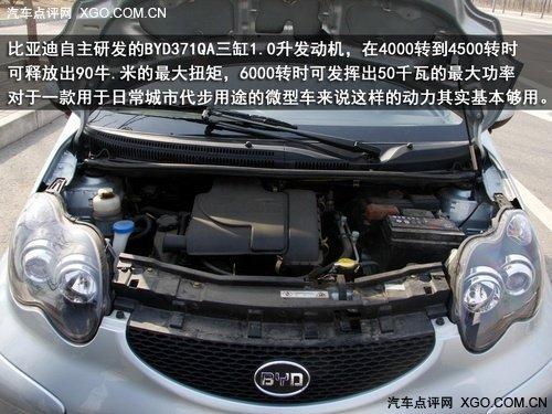 比亞迪F0搭載的是自主研發(fā)的BYD371QA直列三缸全鋁發(fā)動機,號稱“史上最強全鋁發(fā)動機”,搭配BYD5T-09的5檔手動變速箱,可輸出50kW/6000rpm的最大功率,在4000~4500轉時能輸出最大扭矩90Nm,動力輸出偏高轉速。