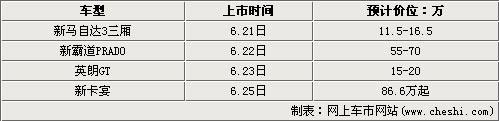 時間進入到6月份以后,我國大部分城市都已經(jīng)進入到了真正的夏天,伴隨著酷熱的天氣各大汽車廠商也紛紛選擇了盛夏時節(jié),發(fā)布他們的最新產(chǎn)品。據(jù)記者統(tǒng)計,在6月份的第三周來自國產(chǎn)和進口的各類新車將有4款相繼上市。那么下面我們就來逐一點評一下下周即將上市的這些車型。
