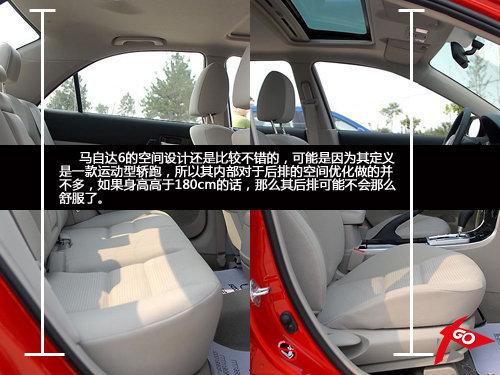 有幾個(gè)女人買車會(huì)考慮這車車內(nèi)是否寬敞?不過(guò)至少很多女性在購(gòu)車的時(shí)候都會(huì)考慮其車體尺寸大小,可能是因?yàn)楦杏X(jué)車體大了,那么自己心里的安全感就會(huì)更充足,雖然這么說(shuō)有違實(shí)際情況,但是至少馬自達(dá)6的尺寸要比緊湊型轎車大不少……