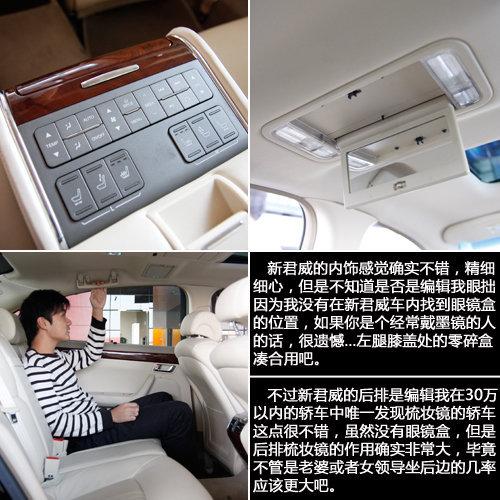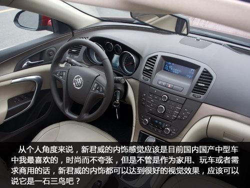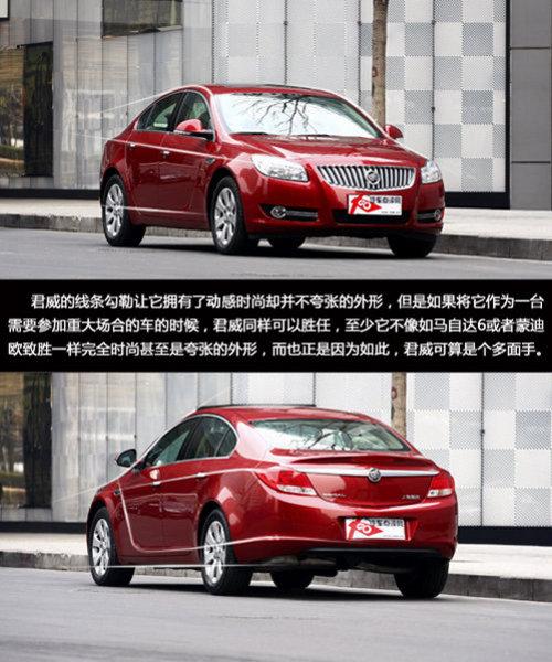 君威的車體尺寸在同級別轎車中算是比較大的,只是軸距讓人感覺略顯不足。而圓滑有些渾然一體感覺的車體造型加上4830mm的車身長度,讓它看起來很大也很有安全感,這也是女性消費者鐘愛君威的直接原因之一。