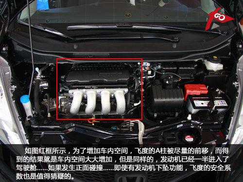 就像前邊說到的飛度短促的車頭,當你打開發(fā)動機蓋子的時候,你會發(fā)現(xiàn)飛度的發(fā)動機的位置已經(jīng)一半進入了駕駛艙,就算有發(fā)動機下墜功能,但是編輯我還是懷疑它的安全系統(tǒng)的能力。