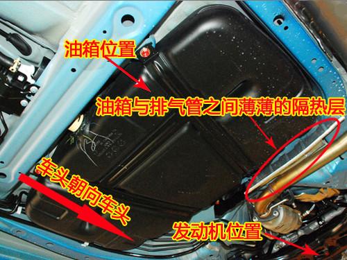 上圖就是飛度的底盤實拍圖,我們可以看到飛度的油箱……可以看到那層薄薄的隔熱層兼防托層……個人建議駕駛飛度盡量避免比較惡劣的路面行駛,否則感覺真的很容易帶來一些你并不想見到的問題。