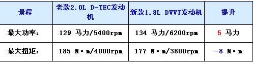 老款景程使用的是一款直列四缸的2.0L發(fā)動機(jī),最大功率只有129馬力(95kW),最大扭矩為185牛米,對于一款2.0L的發(fā)動機(jī)來說,這樣的數(shù)據(jù)確實(shí)有些不理想。而2010款景程更換了科魯茲的1.8L DVVT發(fā)動機(jī),其采用Ecotec技術(shù),最大功率達(dá)到134馬力,最大扭矩為177牛米。在排量降低的情況下仍實(shí)現(xiàn)了最大功率的反超。