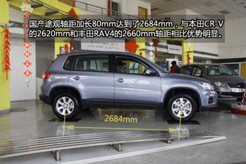 國(guó)產(chǎn)版的途觀應(yīng)用了美版新款車型的前臉造型,也就是現(xiàn)在的大眾家族臉譜——復(fù)古式水平中網(wǎng)設(shè)計(jì)。除了前臉與進(jìn)口國(guó)內(nèi)的Tiguan不同外,為了適應(yīng)國(guó)內(nèi)消費(fèi)者的使用習(xí)慣,國(guó)產(chǎn)途觀還進(jìn)行了相應(yīng)的拉長(zhǎng),軸距達(dá)到了2684mm,相比海外版長(zhǎng)了80mm。