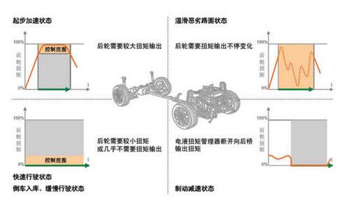 只要仔細(xì)看看廠商網(wǎng)站上四驅(qū)系統(tǒng)的扭矩輸出圖就不難看出了:在大多數(shù)高速行駛,或是倒車入庫(kù)、緩慢行駛的時(shí)候,途觀為了油耗考慮,后輪扭矩分配為零,就是作為一款前驅(qū)車而存在的,只有當(dāng)起步加速時(shí),或是前輪打滑需要后輪驅(qū)動(dòng)脫困時(shí),才會(huì)分配扭矩給后輪,以獲得更好的加速性能或是道路通過(guò)性。這明明就是一套適時(shí)四驅(qū)結(jié)構(gòu),卻要扯上虎皮裝成“智能全時(shí)”!