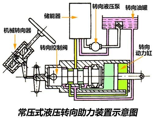 根據(jù)系統(tǒng)內(nèi)液流方式的不同可以分為常壓式液壓助力和常流式液壓助力。常壓式液壓助力系統(tǒng)的特點(diǎn)是無(wú)論方向盤(pán)處于正中位置還是轉(zhuǎn)向位置、方向盤(pán)保持靜止還是在轉(zhuǎn)動(dòng),系統(tǒng)管路中的油液總是保持高壓狀態(tài);而常流式液壓轉(zhuǎn)向助力系統(tǒng)的轉(zhuǎn)向油泵雖然始終工作,但液壓助力系統(tǒng)不工作時(shí),油泵處于空轉(zhuǎn)狀態(tài),管路的負(fù)荷要比常壓式小,現(xiàn)在大多數(shù)液壓轉(zhuǎn)向助力系統(tǒng)都采用常流式?梢钥吹,不管哪種方式,轉(zhuǎn)向油泵都是必備部件,它可以將輸入的發(fā)動(dòng)機(jī)機(jī)械能轉(zhuǎn)化為油液的壓力。