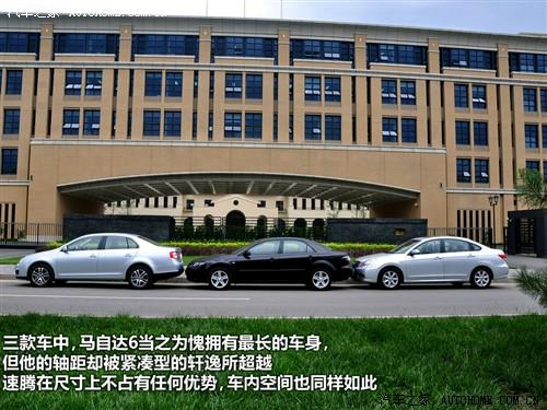 | 車身 | 馬自達6 07款 2.0 自動豪華型 | 速騰 2010款 1.4TSI 自動豪華型 | 軒逸 09款 2.0XL 科技天窗版 |
