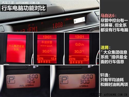 在這方面,馬自達6表現(xiàn)出了中型車的一些優(yōu)勢,有軟性材質的中控臺、四門一鍵上下的車窗、鋁合金全尺寸備胎和四方向調節(jié)的多功能方向盤,只是因為設計年代較早而沒有行車電腦;速騰的表現(xiàn)也不錯,他有手感最好的中控面板和最強大的行車電腦,但備胎不能令人滿意,做工也出現(xiàn)一點瑕疵;軒逸在這方面并沒有表現(xiàn)出日系車型的優(yōu)勢,這里體現(xiàn)出了一些他在成本上控制比較嚴格的不足。