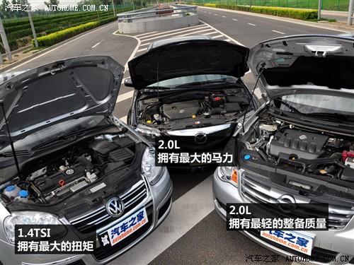 在發(fā)動機(jī)方面,馬自達(dá)6的MZR發(fā)動機(jī)是一款典型的高轉(zhuǎn)速產(chǎn)品,不過安裝在這款整備質(zhì)量1427公斤的中型車上,動力表現(xiàn)盡管也不錯,但相比速騰和軒逸還是不像他們那么激進(jìn)。速騰的1.4T發(fā)動機(jī)大家已經(jīng)十分熟悉,盡管是三款發(fā)動機(jī)中最小的功率,但扭矩卻是最大的,而且從1800轉(zhuǎn)左右就開始爆發(fā),所以動力性能也不錯。駕駛起來讓人感覺最快的還是軒逸,因?yàn)檫@款發(fā)動機(jī)本身的數(shù)據(jù)就很不錯,扭矩超過馬自達(dá)6的發(fā)動機(jī),在我們以前的測試中突破了9秒的百公里加速成績。