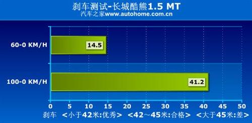 酷熊搭載的是排量為1.5升的發(fā)動(dòng)機(jī),可搭載5速手動(dòng)或者CVT無級(jí)變速箱,之前我們測(cè)試過手動(dòng)擋車型,動(dòng)力表現(xiàn)完全夠用,盡管該類車型并非著重于加速性能,但它還是取得了11.5秒的好成績,41.2米的剎車距離在自主車型中也非常值得肯定,但方方正正的造型在高速狀態(tài)下帶來的風(fēng)噪比較明顯。