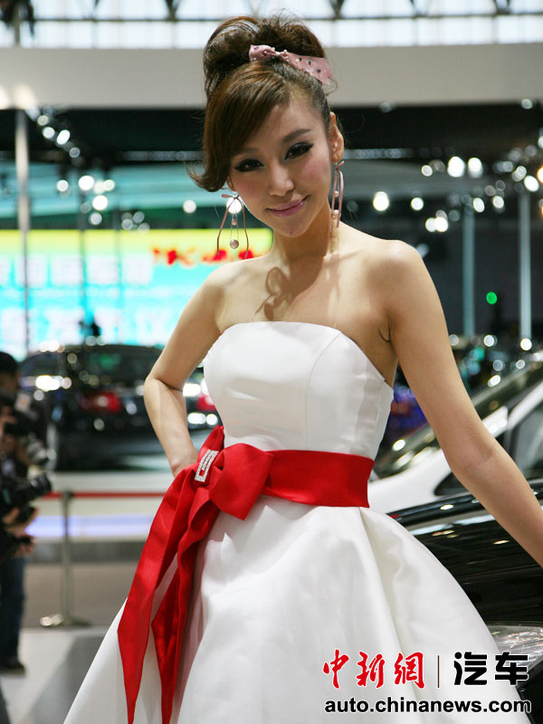 北京車展群芳競艷:靚模一襲白裙秀香肩