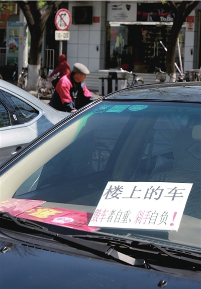 “毀車者自重、剁手自負(fù)!”昨天,東城區(qū)東四北大街43號一輛掛著警示牌的“牛車”引得路人駐足觀看、拍照。車主金先生說,放狠話是因為他的車在停車場多次被劃,希望以此嚇退劃車人。