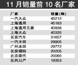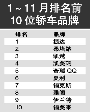 1~11月,自主品牌轎車共銷售113.61萬(wàn)輛,占轎車銷售總量27%,前10大品牌共銷售82.78萬(wàn)輛,占自主品牌轎車銷量的73%。自今年10月以來(lái),自主品牌就實(shí)現(xiàn)百萬(wàn)輛銷售成績(jī)的突破,盡管如此,自主品牌還是不敵日資企業(yè)上升趨勢(shì)強(qiáng)勁。